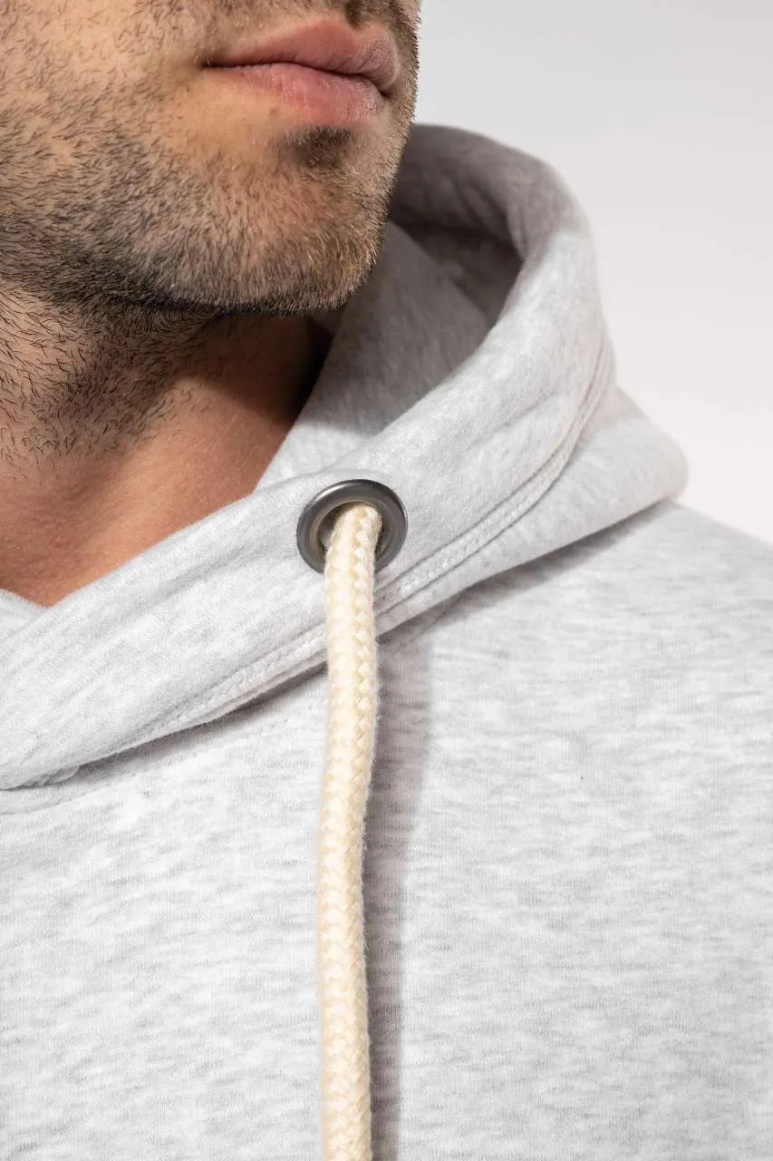 80% cotton / 20% polyester (Ash Heather: 79% cotton / 20% polyester / 1% viscose) Brushed fleece Peached soft touch and "Vintage" look Lined hood Contrasting round drawstring on hood Decorative taped neck Kangaroo pockets Ribbed cuffs and hem This product has been specially treated and appears intentionally aged This manufacturing process results in colour variations between products and makes each piece unique No brand label at neck, only size information for easy relabelling Certified STANDARD 100 by OEKO-TEX®N° CQ1007/7, IFTH
