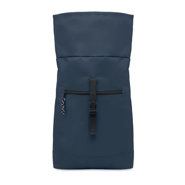 15 inch rolltop laptop backpack in 600D polyester with padded back and base reinforcement. Zippered front pocket. 210D lining.