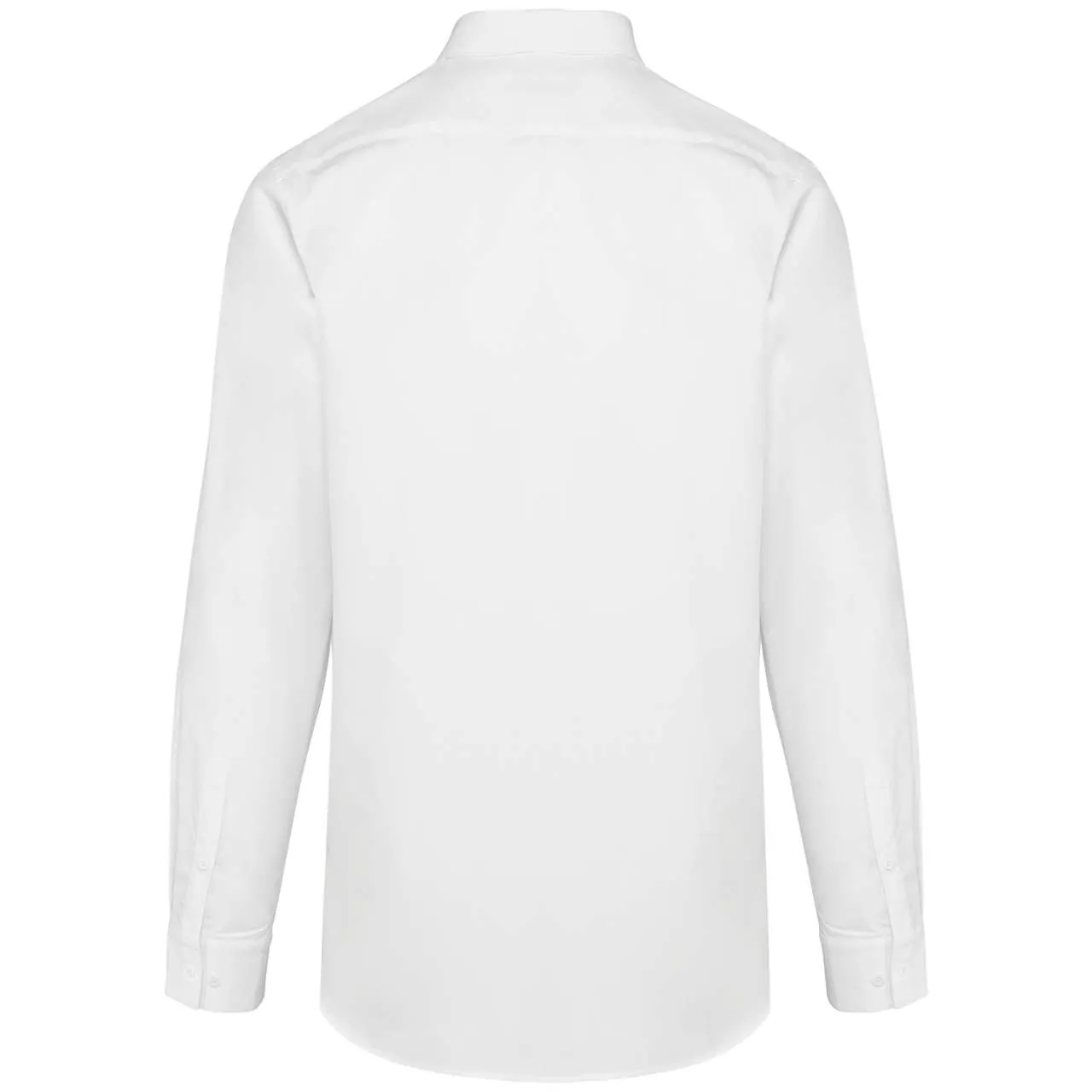100% cotton Twill fabric Easy care (Easy care treatment) Superior quality 80x2 two-ply thread Upper back panel Invisible button placket Mother of pearl buttons 2-button round angle cuffs No brand label, only size label for easy decoration access