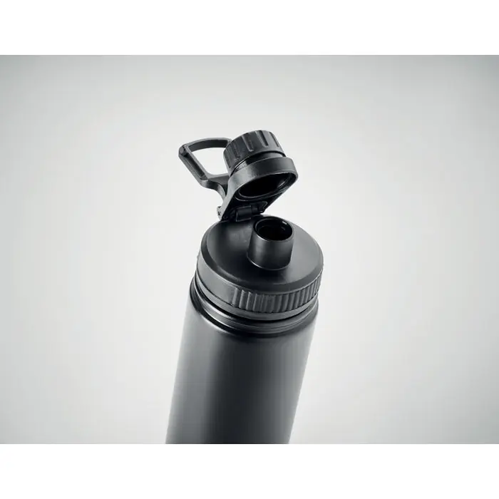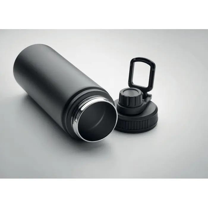 Double wall stainless steel vacuum insulated bottle with sip cap on lid and carry handle. Capacity: 500 ml.
