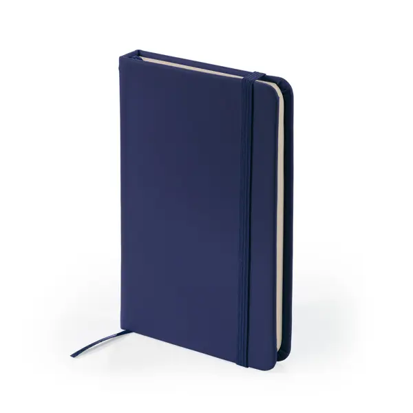 A6 notepad with rigid leatherette covers. Bookmark and elastic band. 100 sheets.