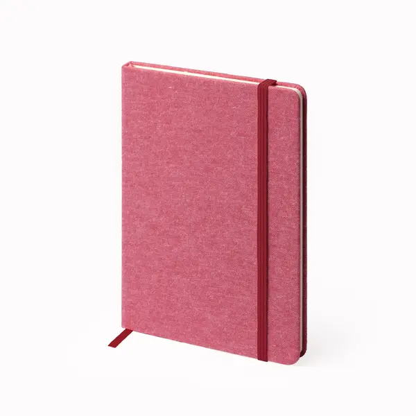 A5 notepad with cotton covers. Page marker and elastic band. 100 plain sheets.