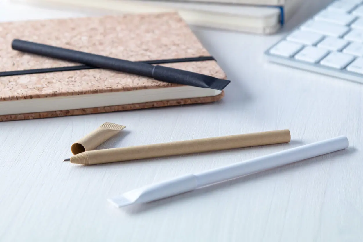 Recycled paper ballpoint pen with matching colour cap and blue refill.