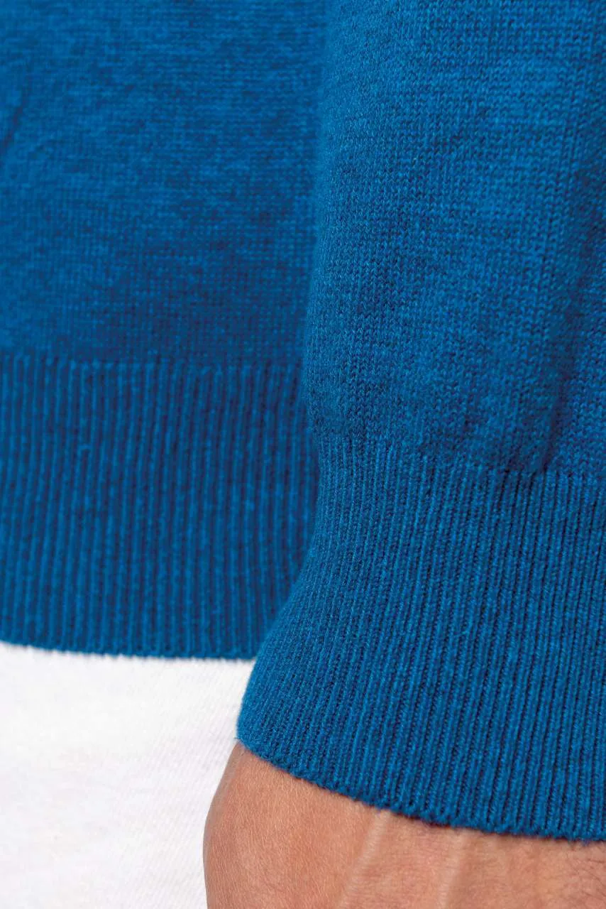87% cotton / 11% polyamide / 2% elastane V-neck and knitted contrast inner band 1x1 ribbed neck, cuffs and hem Stylish comfort fit Certified STANDARD 100 by OEKO-TEX® N° CQ 1007/7, IFTH