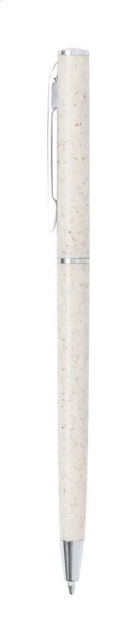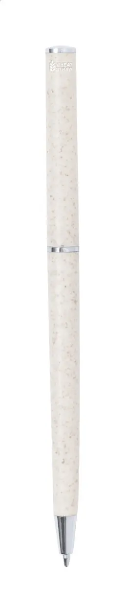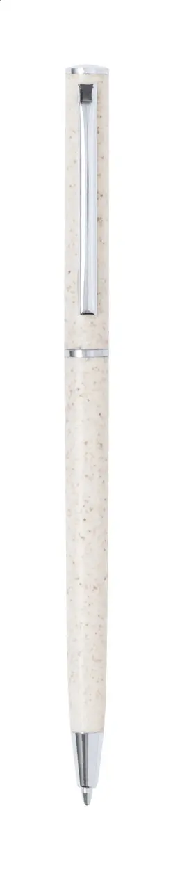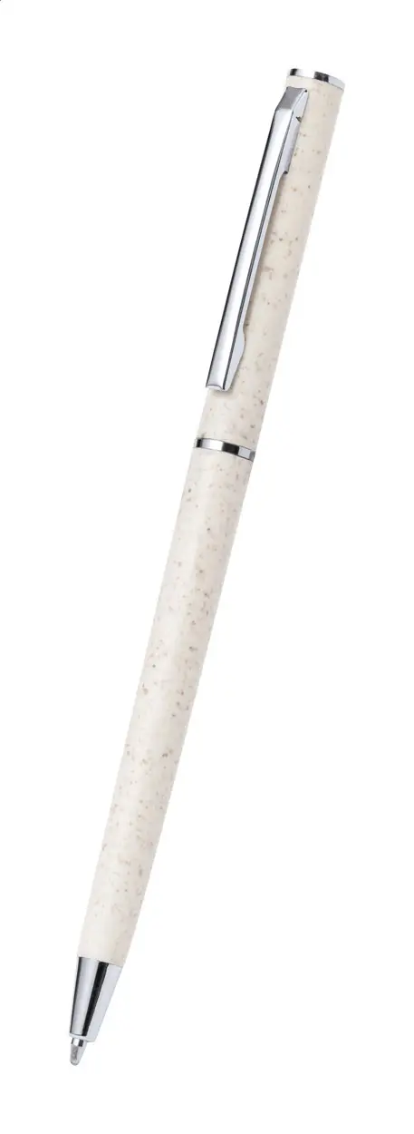Wheat straw plastic twist ballpoint pen with metal details and blue refill.