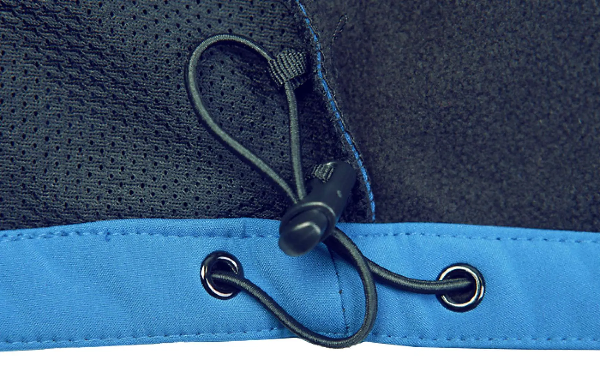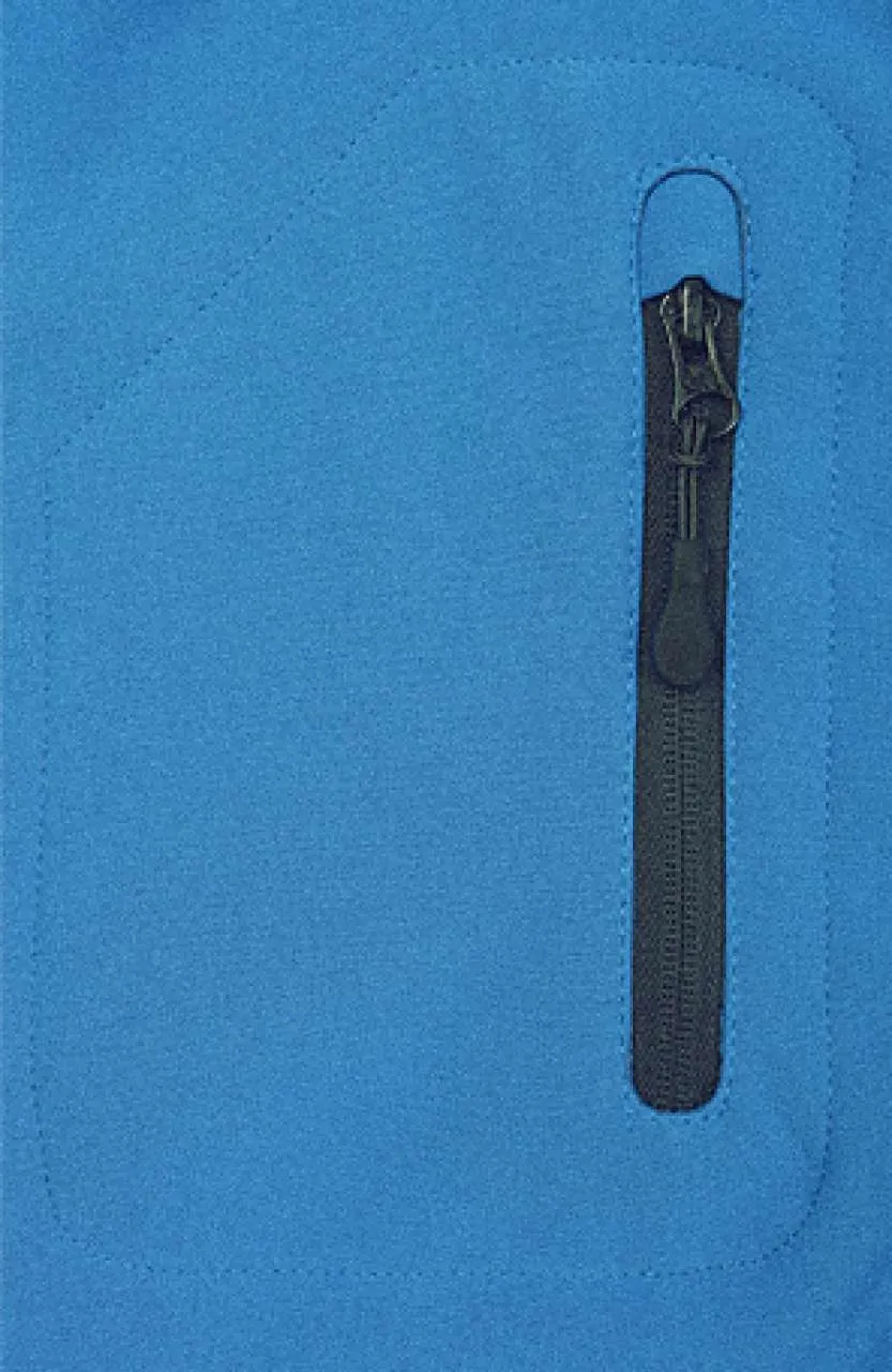 Quality 94% polyester, 6% elastane 100% polyester polar fleece lining 3 layers 8000 mm waterproof breathable membrane Style 2 zipped side pockets 1 zipped chest pocket Waist adjustable drawstring Adjustable cuffs with self-gripping fastener