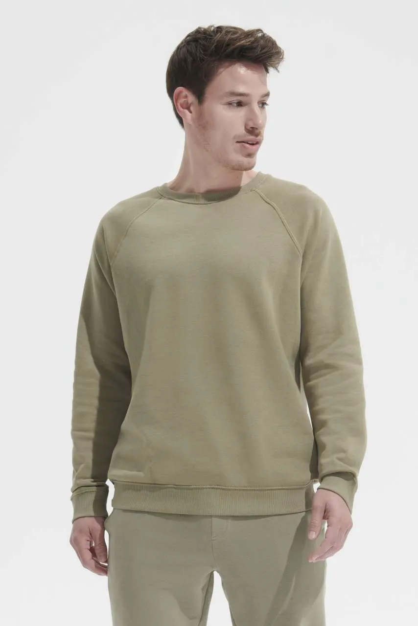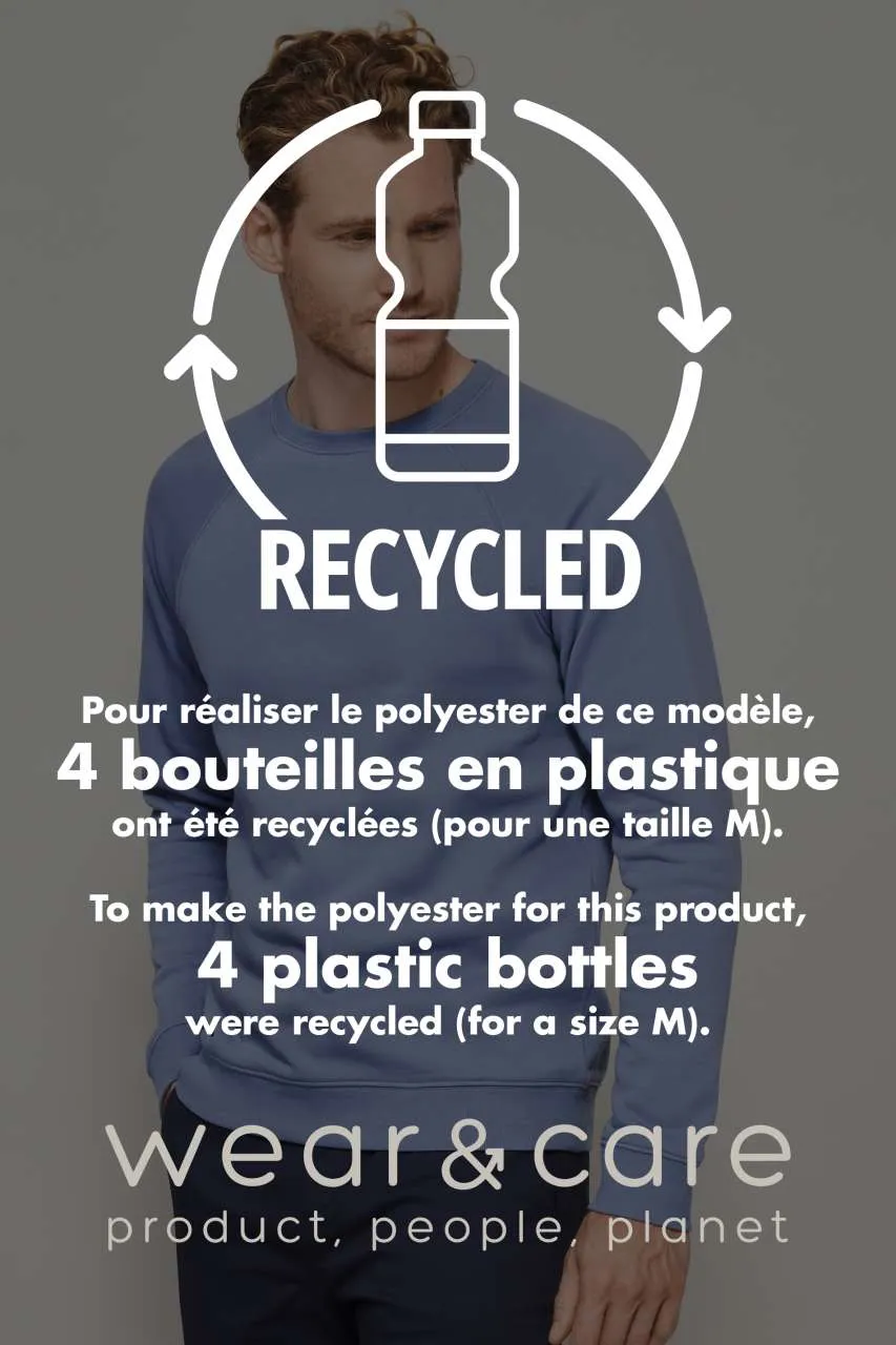Quality 80% organically grown cotton - 20% recycled polyester 3 yarns Brushed lining Outside: 100% organic cotton Style Cut and sewn Raglan sleeves 2x2 ribbed cuffs, collar and hem Half moon inside collar Neck tape