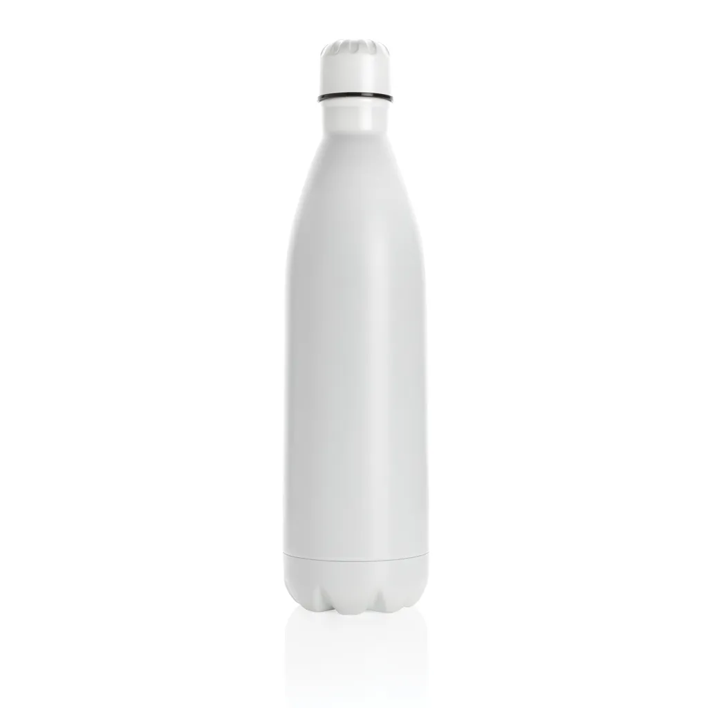 Elevate your daily water intake with this solid colour vacuum insulated stainless steel bottle. The bottle keeps chilled beverages cold for up to 15 hours and hot drinks warm for up to 5 hours. With a base that fits in most cup holders, this sleek looking water bottle will keep you hydrated on the go wherever you are. With its large capacity of 1 litre, it is ideal for a day trip.