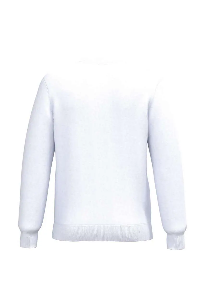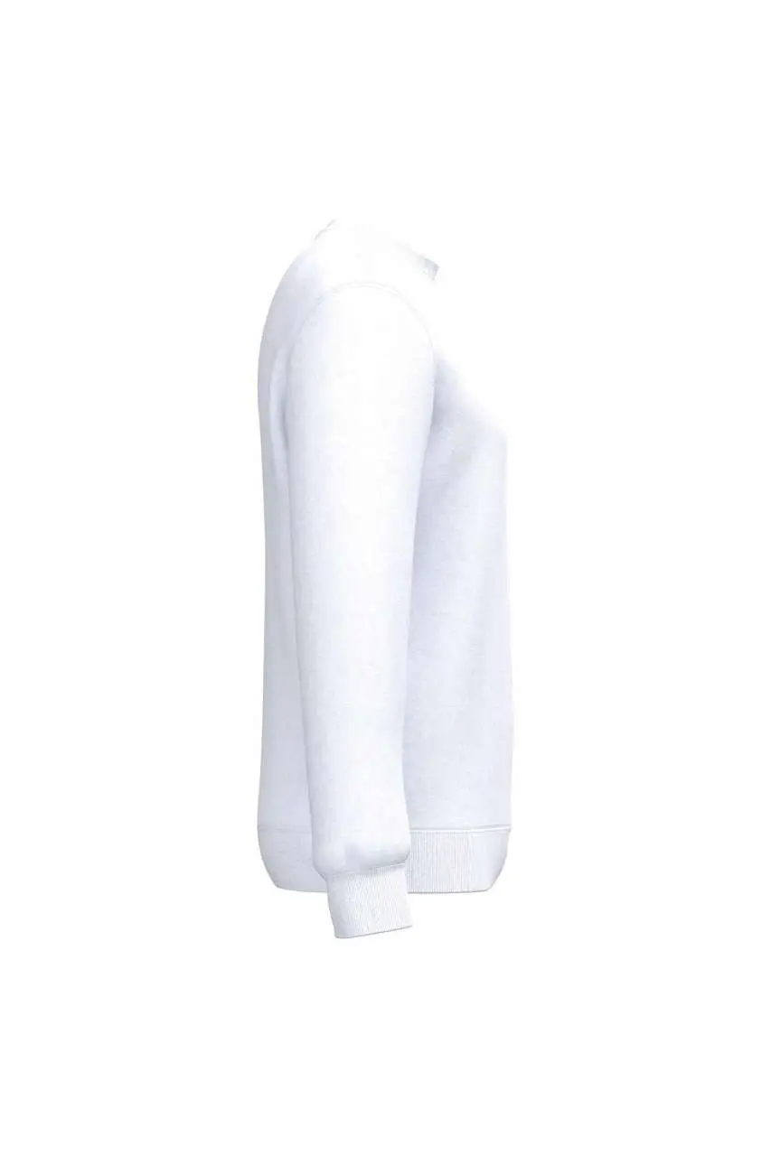 50% ring spun cotton / 50% recycled polyester Brushed fleece Straight fit Cut and sewn 1x1 ribbing with a tubular assembly for a better finish on the neckline, cuffs and bottom hem Tone-on-tone jersey taped neck inside the neckline No brand label on the neckline, only a size tag for easy decoration
